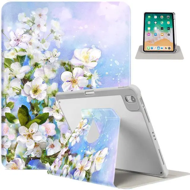 Lalumix for iPad Air M3/M2 11 Inch Case 2025/2024, for iPad Air 5Th/4Th Generation Cover, for iPad Pro 11 Inch Case 4th/3rd/2nd/1st Generation, 360 Degree Rotating Pencil Holder,Slim, Peach Blossoms