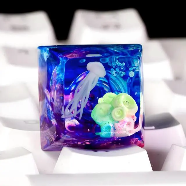 Jellyfish Artisan Keycap Rainbow Coral R1 SA Profile Custom Sea Creature Keycaps 1U ESC Handmade Gaming Sea Resin Key Cap Cherry MX Switch Compatible Mechanical Keyboard Jellyfish Lover Gift