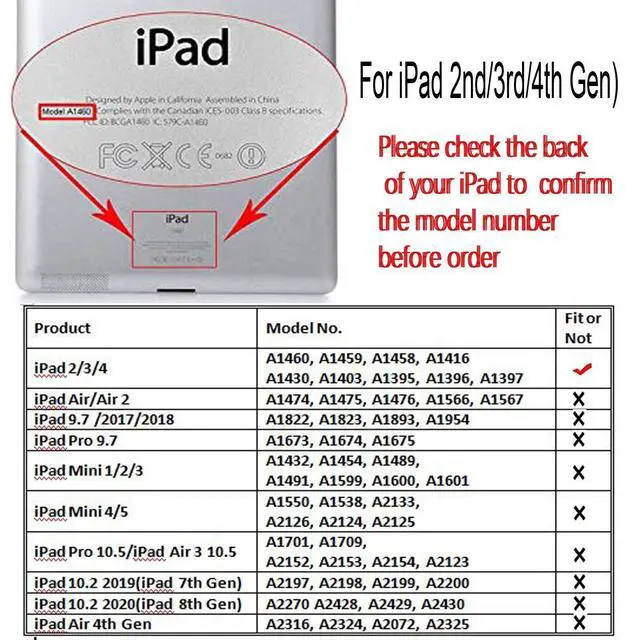 Specially designed for 9.7 inch iPad 2 (2011 Released), iPad 3 (2012 Released) and iPad4 (2012 Released) -including the following