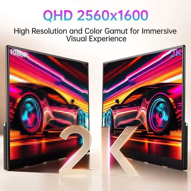 Graphics and Professionals: The 2k portable monitor with 2560*1600 resolution provides clear image quality, immersive visuals. 100% DCI-P3 wide color gamut, 500 nits brightness allowing for more accurate and vibrant display of colors and details. Effectively reduce blue light radiation and anti-glare, even for long time viewing without eye fatigue. It is ideal for professional design work, photo editing, and immersive multimedia experiences ^^