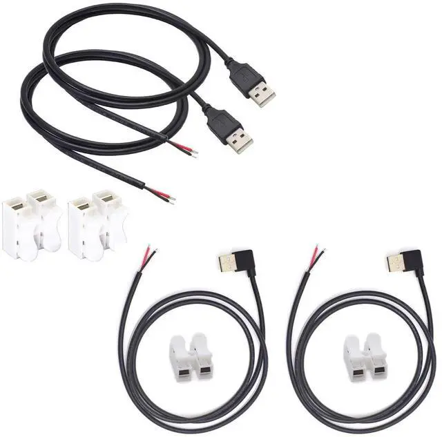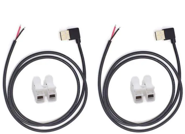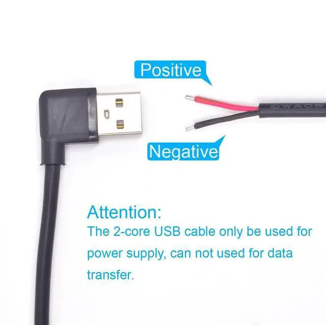 What You Get: 2PCS 1M/ 3.3F t 90 degree usb 2.0 male & usb 2.0 male bare cable pigtail open end extension cables 5V5A, with 2pcs 2-Position Spring Wire ConnectorSuitable for cable DIY, more convenient and efficient, saving time ^^ 90 Degree USB & USB Power