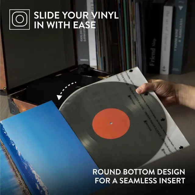 Unique Round Bottom Design: Stay ahead of the curve with our round bottom sleeve design. This shape allows for easy insertion and removal of your vinyl records, protecting them from wear and tear.
