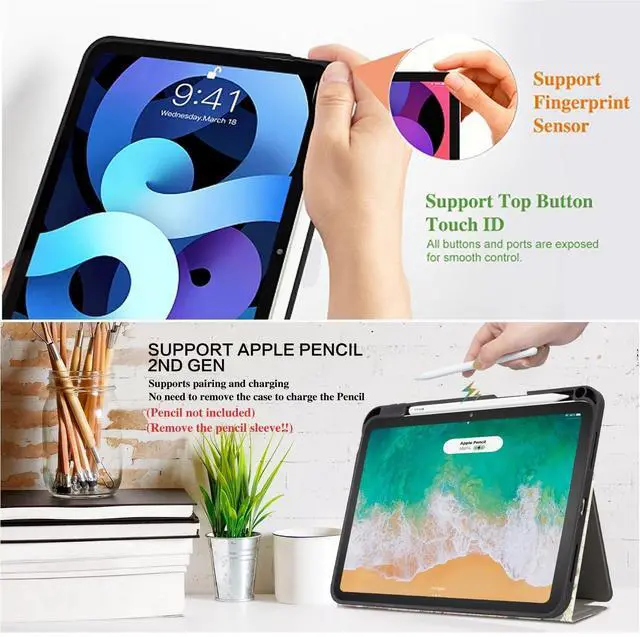 Button Touch ID]: This iPad case has two slots with upgraded anti-slip material, you can easily adjust it to different angle positions to reach your most comfortable viewing and typing angles. The anti-slip lining keeps the Tablet Case stable in any position, allowing you to find the perfect angle for any activity. The button position uses a hollow design so as not to affect fingerprint recognition. Support fingerprint sensor, fast and easy use experience ^^ [Reliable