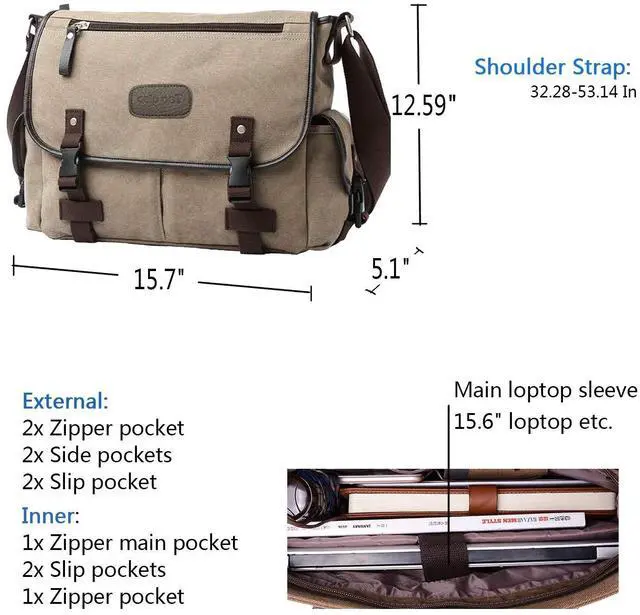 ^^ Multiple pockets: 1 zipper pocket on the flip, 1 zipper zip pocket on the back, 2 side pockets, 2 slip pocket under the flap; Internal access to1 main zipper compartment includs 1 padded laptop compartment fits 15.6 inch laptop with velcro closure, 2 slip pockets and 1 zipper pocket. ^^ Adjustable shoulder strap, Dark texture on the surface, stylish and simple, Suitable for women and men. Soft and thickened shoulder pads to reduce shoulder pressure.