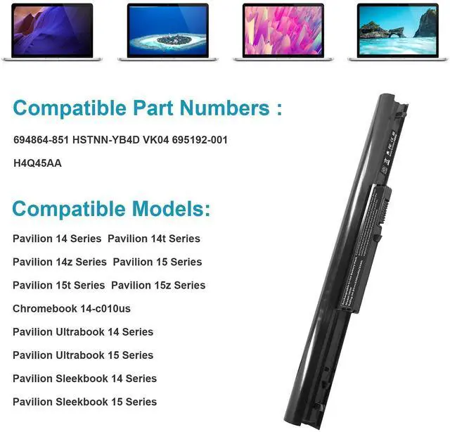 Buy with confidence! Direct from Manufacturer. High performance. Affordable price! We have been manufacturing the laptop battery for 11 years. Grade A cells ensure fast charges and low power consumption; FCC / CE / RoHS Certified, Built-in circuit protection ensures both safety and stability. And We Promise the Laptop Batterys Quality for Customer. ^^ HP Pavilion 14 Laptop Notebook Series HP Pavilion 14t Series HP Pavilion 14z Series HP Pavilion 15 Series HP Pavilion 15t Series HP Pavilion 15z Series, HP Pavilion Sleekbook 14t Series HP Pavilion Sleekbook 14z Series HP Pavilion Sleekbook 15 Series HP Pavilion Sleekbook 15t Series HP Pavilion Sleekbook 15z Series ^^ HP Pavilion Ultrabook 14-B Series HP Pavilion TouchSmart 14-B Series HP Pavilion TouchSmart 15-B Series HP Pavilion Sleekbook 14-B Series HP Pavilion Sleekbook 14Z-B Series HP Pavilion Sleekbook 15-B Series Hp Pavilion TouchSmart 14 Series 14-b109wm 14-b124us 14-b137ca 14-b150us 14-b173cl Hp Pavilion TouchSmart 15 15-b000 Series ^^ Hp Pavilion TouchSmart 15 15-b000 Series HP Pavilion Sleekbook 14