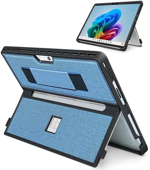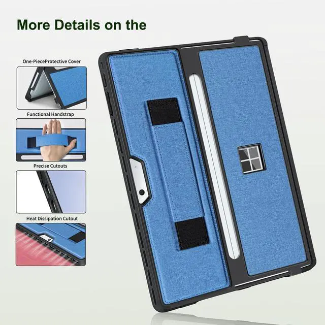 [Functional Handstrap] This cover is designed for Microsoft Surface Pro models 11, 10, 9, and 8. It features a strong and secure elastic hand strap tha