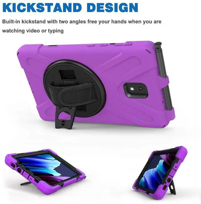 Specifically designed for Samsung Galaxy Tab Active5 8" 2024 Release, X300/X307, Samsung Galaxy Tab Active3 8" 2020 Release, T570/T575/T577. Please double-check your model number in tablet settings before placing your order to ensure compatibility. ^^ Advanced 3 layer designed case combined of polycarbonate hard shell and flexible TPU withstands accidental drop, bump and shock. ^^ Cover built with 360 degrees Rotatable kickstand for convenience to typing and video watching. ^^ Case built with hand strap Ideal for workers to work with tablet. ^^ Adjustable removable shoulder straps. According to any need, remove the shoulder strap or the length can be easily adjustable, you can carry your tablet like a carrying bag.