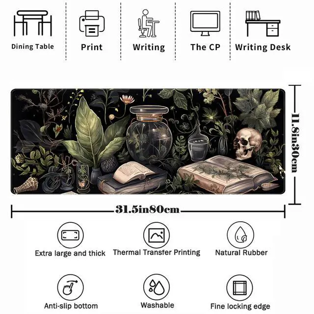 Stable Operation: The bottom of the mouse pad is stitched together with the non-slip rubber base. You won't get distracted by the sliding of mouse pad when you're working or playing gamesMaterials: Breathable fabric, comfortable Lycra Surface and Non-Slip Rubber BaseX-Large Size 31.5 x 11.8 Inch / 80X30 CMThickness 0.12 Inch / 0.3