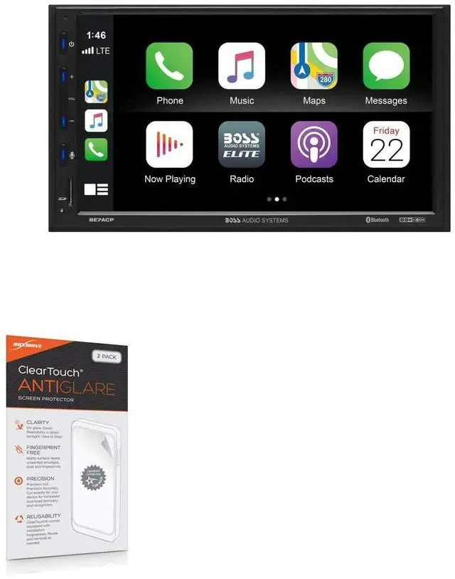 🌞 [ANTI-GLARE] BoxWave Screen Protector Compatible With BOSS Audio BE7ACP. Two (2) Award-winning Anti-Glare Screen Protectors, precision-cut to fit your BE7ACP's exact dimensions! Keep the extra one for back up later, or share one with a friend! ^^ 💪 [STRENGTH AND STABILITY] Dual-layered high-grade PET designed for durability; PROTECTS your screen from scratches, fingerprints, and dust ^^ 😎 [UV PROTECTION] Reduces 90% of UV rays caused by reflected light, protecting your eyes ^^ 🧩 [PERFECT FIT] GLUELESS adhesive bonds perfectly to your screen and will never leave a sticky residue after peeling ^^ 💼 [INCLUDED] Each package contains two (2) ClearTouch Anti-Glare screen protectors for your BE7ACP, ClearTouch Applicator card, and microfiber cleaning cloth.