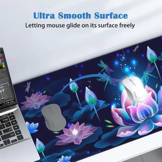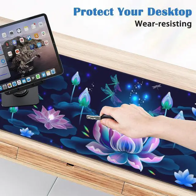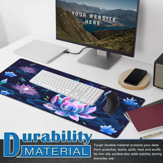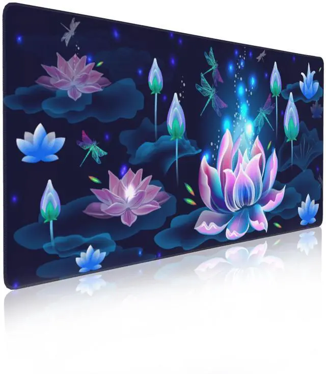 Lotus Flower Desk Mat Mouse Pad,Large Gaming Desk Pad Mousepad Dragonfly Computer Laptop Keyboard and Mouse Mat,Desktop Protector Mat for Women Girl Office 31.5x15.7 in