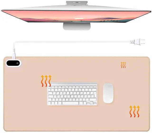 Features: Do not place any items that are easily ignited or damaged by high temperature. Potential damage caused by improper use: Desk Surface Warping or DiscolorationUsing the desk pad foot warmer pad on heat-sensitive materials such as painted or plastic, wooden surfaces may cause bubbling, warping, or permanent heat marks. Mouse or Keyboard MalfunctionExcessive heat or prolonged contact may affect the sensor or rubber components of nearby devices, leading to reduced performance or early wear. Power Cord or Outlet MeltingBending cords or using the heated desk pad near moisture can lead to overheating, short circuits, or damage to the plug and outlet. Paper or Documents Burning or CurlingPlacing documents, folders, or books on the heated surface may result in curling, brittleness, or burn marks over time. Damage to Heat-Sensitive DevicesPhones, external hard drives, or other electronics may overheat if placed directly on the heated mouse mat, risking data loss or component damage. Scorching of Fabrics or ClothingItems made from synthetic fibers may discolor or melt if left on the heated pad for too long. The large size measuring 23.6" x 14.2" provides ample space for both your mouse and keyboard, giving you plenty of room to maneuver while keeping your hands warm.