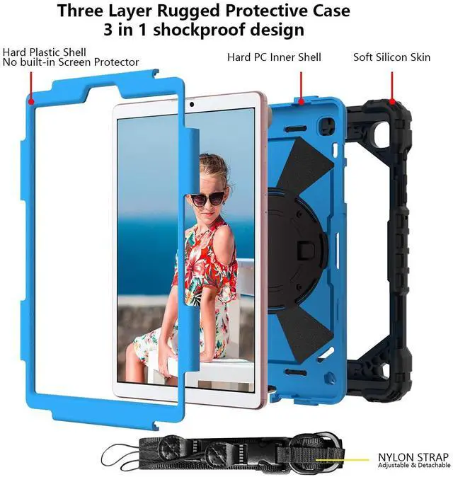 The case for Galaxy Tab A7 lite is made of high-quality hard PC + flexible shock-absorbing silicone, a three layer shockproof structure provide your tab from scratches and accidental drops, bumps and impact