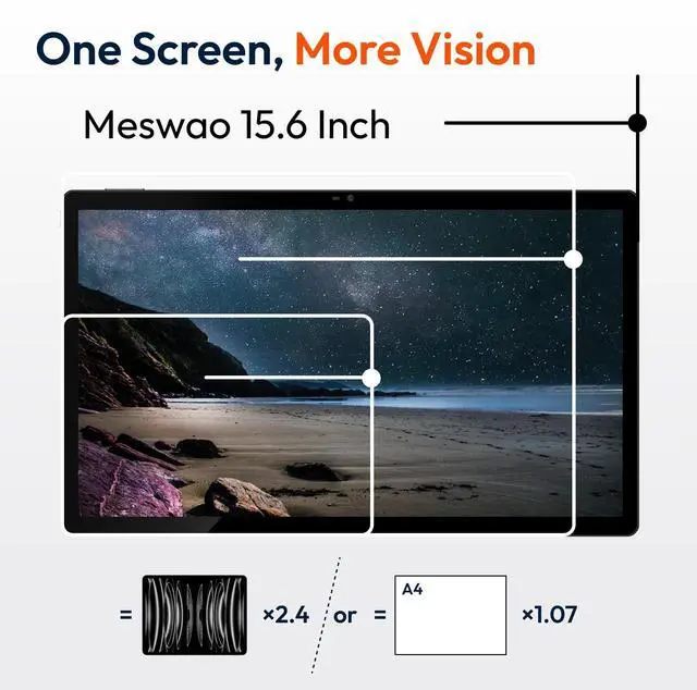 POWERFUL HELIO G99 PROCESSOR: Featuring an advanced MTK G99 core, MESWAO 15.6 Inch tablet guarantees seamless performance across web browsing, video streaming, and gaming. Crafted with a sophisticated 6nm process and a "2 + 6" configuration, it ensures a experience without delay. The Cortex-A76 achieves a peak speed of 2.2 GHz, complemented by the Cortex-A55 operating at 2.0 GHz, delivering unparalleled processing power for optimal efficiency. ^^ 12000MAH