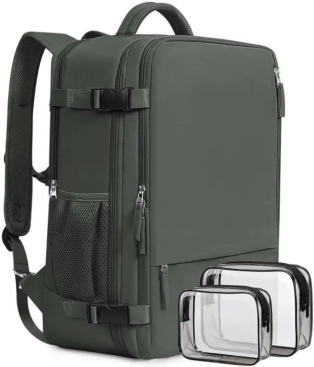 Flight Airline Approved Personal Item BagThis portable carry-on backpack is designed for travel, meets flight approved dimensions and can be placed as a personal items bag on the top of the aircraft or under the seat. This backpack can open between 0-180 degrees, helping you get through airport security easily and quickly. Meet the carry-on requirements of most airlines (Backpack net weight: 2.2 lb) ^^ Large Capacity Backpack24L large travel backpack has multiple compartments, which can meet the needs of 2-3 days travel. Main pocket x1, laptop padded compartment x1 (fit up to 16 laptop), wet bag x1, front zipper pocket x2, mesh pocket at side for water bottle or umbrella, back anti-theft zipper bag which can store valuables such as mobile phone or cards, and other convenient inside pockets for travel essentials. These small designs keep your items neat and easier to find ^^ Upgraded Quality Fabric & Trolley Sleeve DesignBeraliy personal item travel bag is made of water-resistant fabric, sturdy, anti-wrinkle, wear-resistant, lightweight, and with sturdy metal zippers. Breathable adjustable shoulder strap, adjustable chest buckle and thick sponge back pad help relieve the pressure on the shoulder and back. The back trolley sleeve design can fix the backpack on the trunk, which is convenient for carrying and transportation, making travel easier ^^ USB Charging & Headphone Port DesignThis USB backpack adds a unique charging port design, uses a data cable to connect the power bank inside the backpack and the mobile phone outside, offers you a more convenient way to charge your phone while walking.