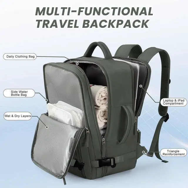 (Note: The power bank and cable are not included). There are also two extra storage bags that can be used to store toiletries or cosmetics ^^ Multi-purpose Outdoor Backpack This casual carry-on backpack is made of high-quality materials for a more sturdy and stylish style. It's the most appropriate personal item on the flight! You can also use it anywhere, such as international travel, college, camping, hiking or business. This is the perfect gift for men and women who love travel, and a great choice for Father's Day, college return, Christmas or other holidays. THIS ITEM IS NOT INTENDED FOR USE BY CHILDREN 3 AND UNDER