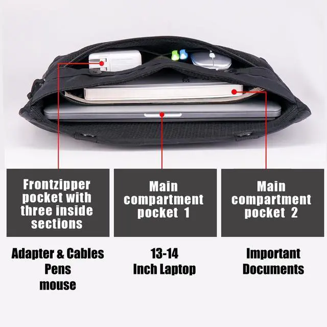 Organized Multi-Compartment Storage: This functional 14 inch laptop sleeve case includes separate pockets for your charger, mouse, and cables, keeping accessories tidy and preventing tangles during traveland avoiding the need to rummage for small gear ^^ Compact and