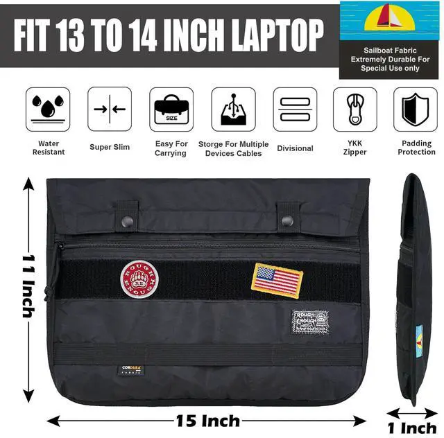 Portability: Measuring 15x111 inches, this slim 14 inch laptop sleeve case for men features lightweight. It fits most 13-14" laptops while adding minimal bulk, easily sliding into backpacks or luggage compartments for hassle-free carrying ^^ MOLLE Compatible and