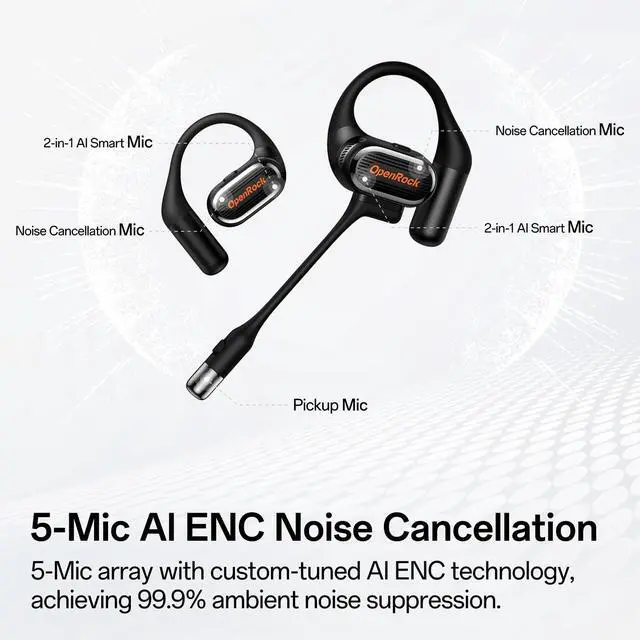 FLEXIBLE WEAR & MAGNETIC BOOM MIC: Wear it on either ear for ultimate comfort. The detachable magnetic boom mic connects instantly and securely, enabling an automatic 0.3 s switch to HD Meeting Mode. Remove it to return to Daily Modeseamless transition between work and leisure. ^^ AI 5-MIC ENC WITH 99.9 %