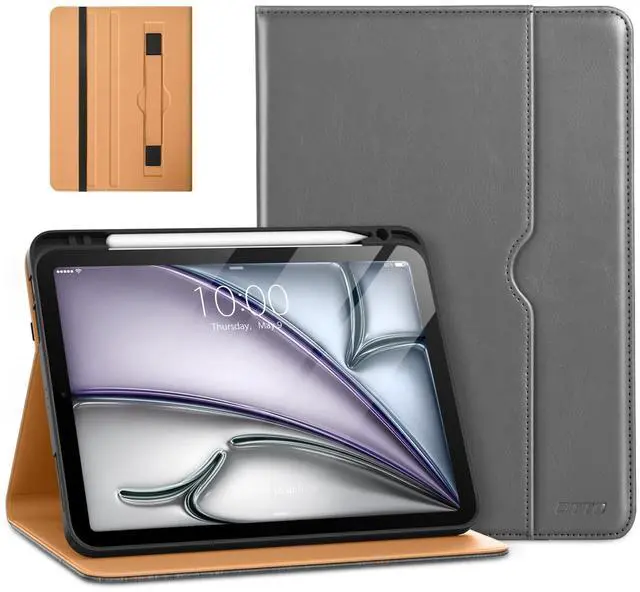 Number: A2588/A2589/A2591/A2316/A2324/A2325/A2072). Not compatible with any other iPad model ^^ Unique Design - Built-in hand strap for one handed operation of your iPad Air 11 inch/5th/4th, multiple horizontal bracket angles for comfortable watching movie or typing, free your hands ^^ Magnetic Smart Cover - Auto Wakes/Sleep, automatically wakes or puts your tablet to sleep when the lid is opened and closed external elastic band enhances magnetic closure ^^ Multi Function - Features front document card pocket to keep notes, cash, cards. Built-in Pencil holder support your Apple Pencil (USB-C) or Apple Pencil 2nd gen charging.