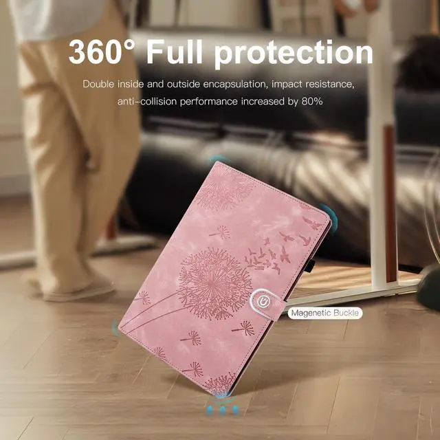 [Compatible Modle] This samsung a9 plus tablet case is only designed for samsung tablet a9 plus, not fit any other version, please check your device model before purchase. If you are not sure whether this case suits your tab, you are welcome to drop us a message, we will provide the best option for you among our thousands of products ^^ [Dandelion and Freedom] Adopted the dandelion as the basic element and embellished with a herd of soaring birds, this samsung a9 plus is the carol of free nature, making the best balance between artsy expression and industry craft, showing our attention towards climate change, wildlife caring and environmental protection ^^ [Multi Layers Protections] The outer layer is made of PU synthetic leather, it maximally simulates the texture of leather, keeping the comfortable hand-feeling of real fur and a better Heat dissipation effect.
