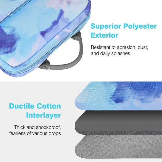 ^^ Superior Protection: The exterior is made of premium polyester material, anti-splash, wear-resistant and dustproof. The shock-absorbing cotton interlayer, thickened corners and soft plush interior can protect your device from scratches, wear, dents, bumps and shocks.