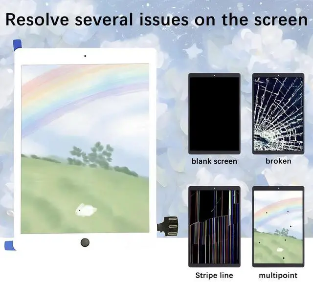 Adhesive tapeInstallation Tips: 1. If you have no experience with installing screens, it is not recommended to install screens directly. For installation, you can contact professional maintenance personnel. If you need help, please contact us. We will respond to you as soon as possible. 2. It is recommended to turn off the power supply before installation. Avoid tablet failures. 3. when replacing the LCD components. Please select the correct installation tool. And put them in the right place. Note that different screws are not suitable for all cases. Using the wrong screw can easily damage the screen. 4. The screen of the tablet is a glass product, please place the screen carefully when unpacking or installing. Do not push objects to the edge or corner of the screen. It's easy to break. Screen damage during installation that does not fall within our after-sales area. 5. Please do not bend the LCD cable too much. Over 90 can cause a black display. 6. If after installation lines appear on the screen or the screen cannot be touched.