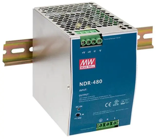LINOVISION MEAN WELL NDR-480-48, 480W Industrial DIN Rail Power Supply with 48V 10A Output, Buit-in Active PFC Function