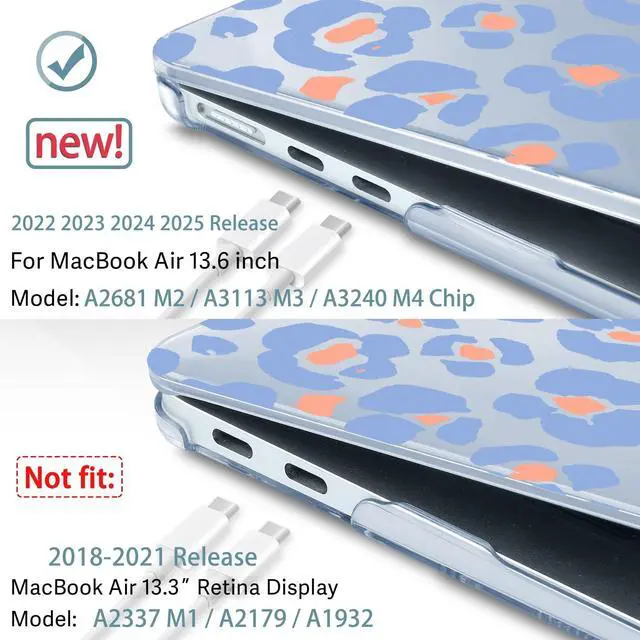 Compatible with: For MacBook Air 13.6 inch Model A2681 Apple M2 Chip with Liquid Retina display and Touch ID ( 2022 2023 Release ) For MacBook Air 13.6 inch Model A3113 Apple M3 Chip with Liquid Retina display and Touch ID ( 2024 Release ) For MacBook Air 13.6 inch Model A3114 Apple M4 Chip with Liquid Retina display and Touch ID ( 2025 Release ) Case Note