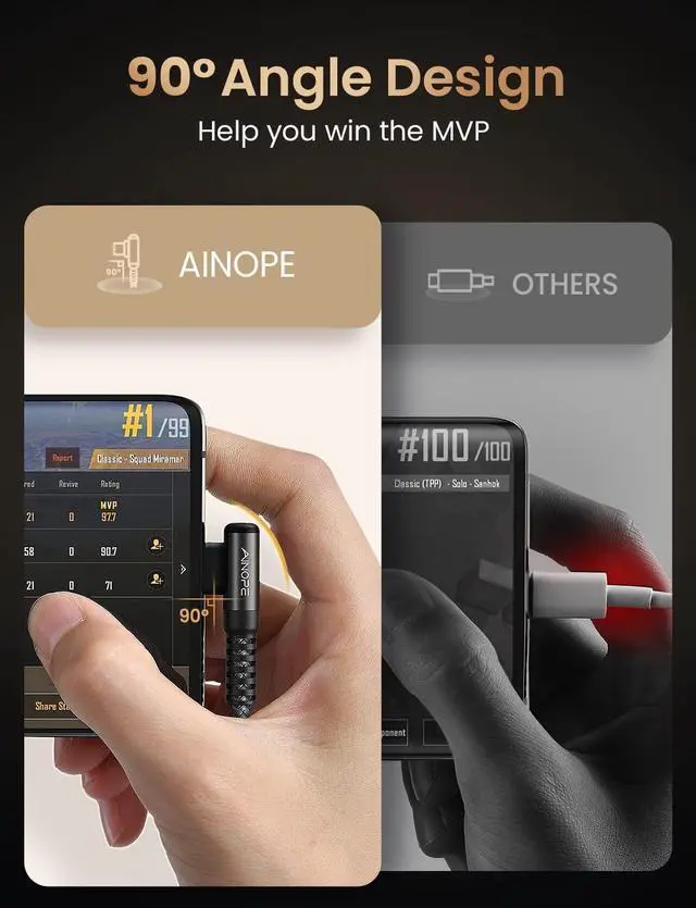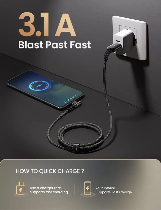 [Upgraded Exclusive Right Angle Design] usb c charging cable with an innovative 90 degrees " L " design. It's user-friendly design more convenient and comfortable for playing games, watching videos, reading e-books and online shopping when you charging.