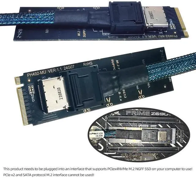 Suitable for small hosts, desktops, laptops, etc. to convert M. 2 sockets to Oculink sockets, with fixing holes for fixing. ^^ The cable transmits PCI Express 4.0 signals using the NVMe protocol; Support PCIE 4.0 data transmission, Data transfer rate up to 64Gbps, Supports NVM Express (NVMe) 1.2. support connecting GPU graphics card, SSD, expansion card, etc., backward compatible with PCIE 3.0. ^^ Transform your works with this cable adapter, facilitating integration of M. 2 M Key into systems requiring OCuLink connection; Elevates your system's capabilities with our adapter, ensuring a stable and robusts connection investments without compromising on space or convenience.