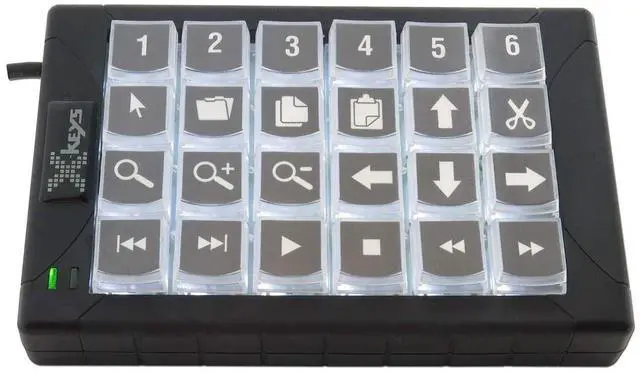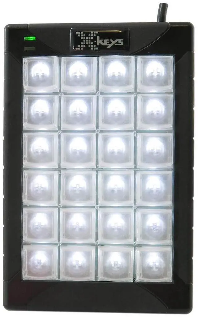 All White Backlighting 24 dedicated keys with white backlighting in a compact footprint. A versatile control solution for any computer application. The XK-24 offers twenty-four programmable keys to trigger macros, shortcuts, and applications, select tools or open files or directories.