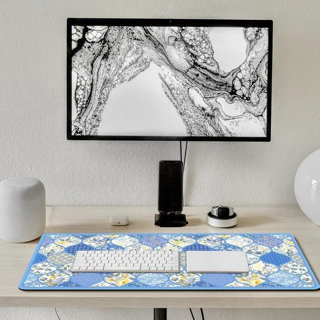 Mouse Pad Colorful Floral White Mouse Pad Big Desk Pad Anti-Slip Large Mouse Pad for Desk Soft Cute Mouse Pad for Keyboard Office Home 35.4 x 15.7 inches