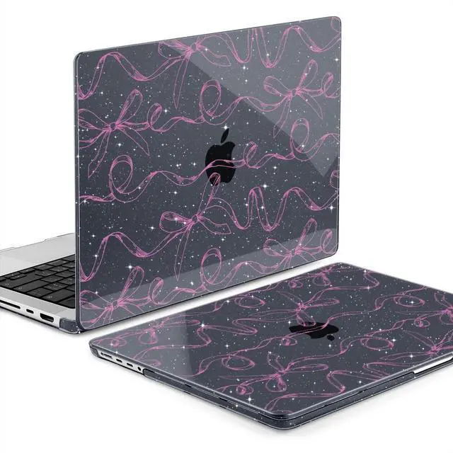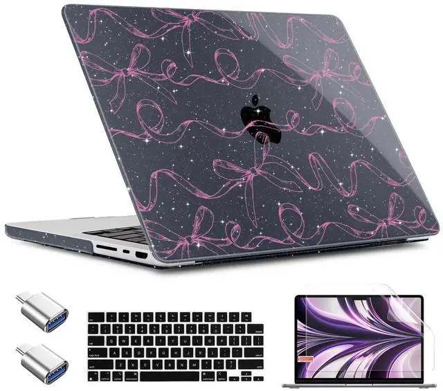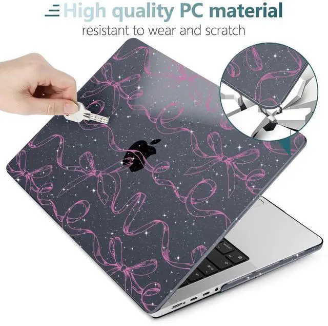 TWOLSKOO for MacBook Pro 14 inch Case M5 M4 M3 M2 M1 Pro Max Chip (2026-2021), Plastic Hard Shell & Keyboard Cover & Type C Adapter & Screen Protector, Sparkly Bows