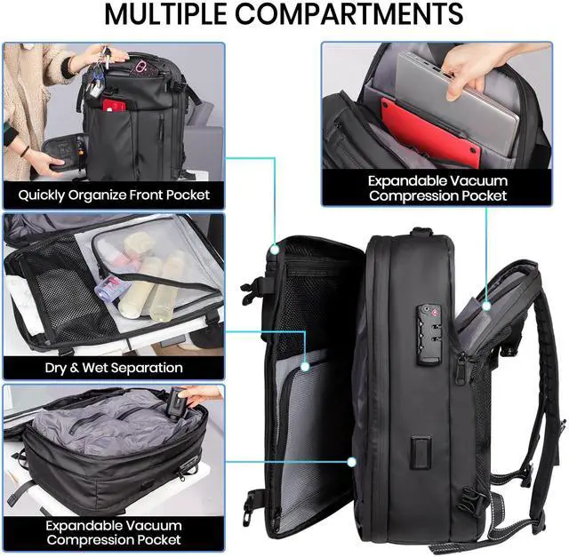 Waterproof Features: Suitable for men and women travel backpack, made of Oxford cloth material, leather film matte fabric, plus waterproof zip, with rainproof function. The backpack is also equipped with a Travel Sentry-certified built-in anti-theft combination lock to keep your valuables safe and sound.