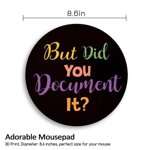 Awesome Mouse Pad Design: The round mouse pad features with a funny sentence "But Did You Document It?", it brings a smile to everyone. A cute and vibrant look gives us a good visual enjoyment for positive emotions in working, studying or gaming, suitable for all style desktop, keyboard, laptop and wireless computer mouse