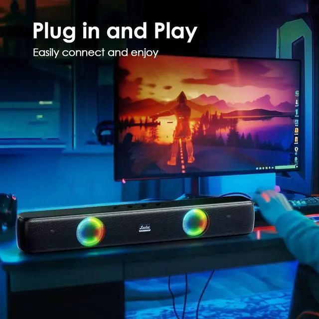 Wireless Bluetooth Connection: This Bluetooth stereo speaker supports Bluetooth 5.1, fast pairing, stable connection, compatible with a variety of computers and mobile devices. And computer soundbar also equipped with USB, TF, AUX, FM Band(88-108 MHz), Colorful light function. The intuitive buttons make it easy to adjust the volume, switch modes and other operations, so even users who are not familiar with electronics can get started quickly and enjoy a smooth experience ^^