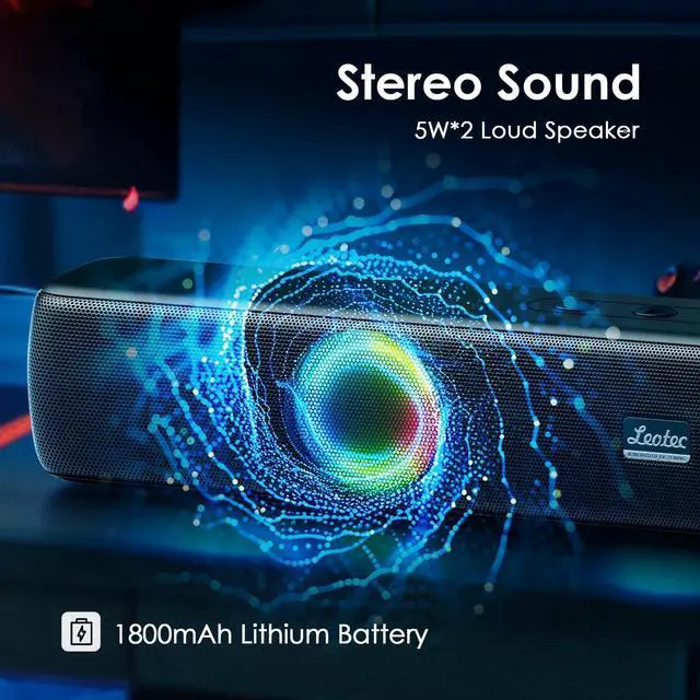High-quality Sound: The LEOTEC soundbar built-in 5W*2 speakers, using advanced audio technology with stereo sound to provide clear highs and deep lows to enhance your listening experience. The powerful speaker enables it to output full and powerful sound effects, whether it is watching a movie with stunning sound effects, listening to music with delicate melodies, or gaming with realistic sound, all of which can be clearly and powerfully presented to create an immersive audio atmosphere for the user ^^ Built-in 1800mAh