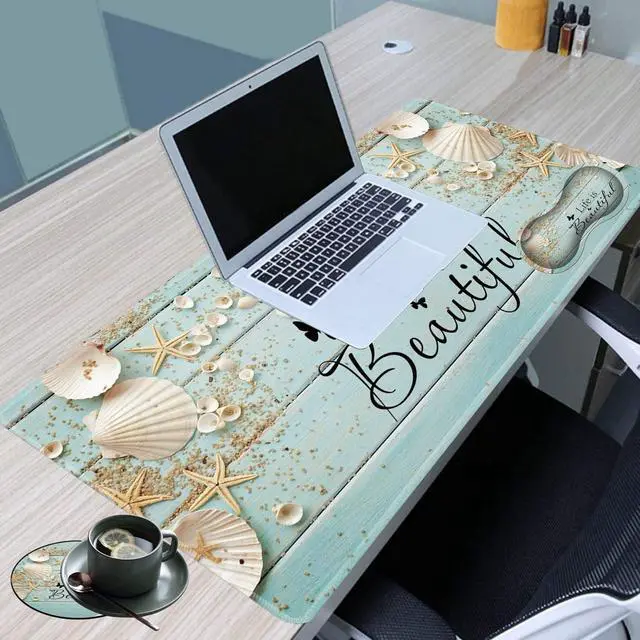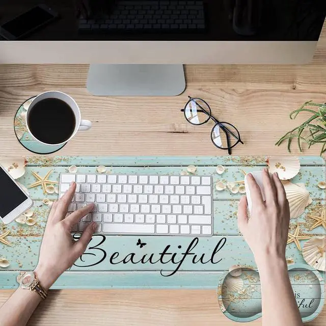 • 3 in 1 set sizeExtended mouse pad size (31.5 x 11.8 x 0.08 inches), ergonomically compatible wrist pad size (6.8x3.7x0.98 inches), coaster diameter 3.93 inches. Non-slip suits are suitable for office work and home.