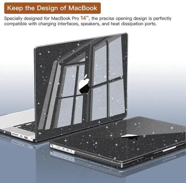 CISSOOK Sparkly Glitter Star Case for MacBook Pro 14 Inch M5 A3434 M4 A3112 A3185 A3401 A2918 A2992 M3 A2779 M2 A2442 M1 Pro Max, Black Hard Shell Case for MacBook Pro 14 2025-2021 Release