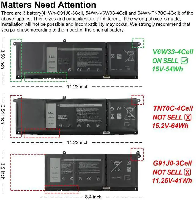 Series ^^ Note: There are 3 battery(41Wh-G91J0, 54Wh-V6W33 and 64Wh-TN70C) of the above laptops, Please choose the which one you are going to replace and according to your laptop's original battery ^^