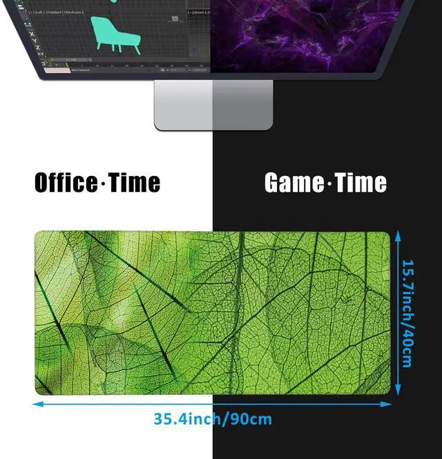 • Extended Mouse PadThe desk mat measures 15.7"x35.4"(40cm x 90cm),3mm thick.The desk pad is large enough to provide perfect movement space for gaming or office work