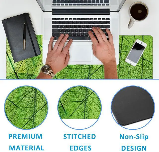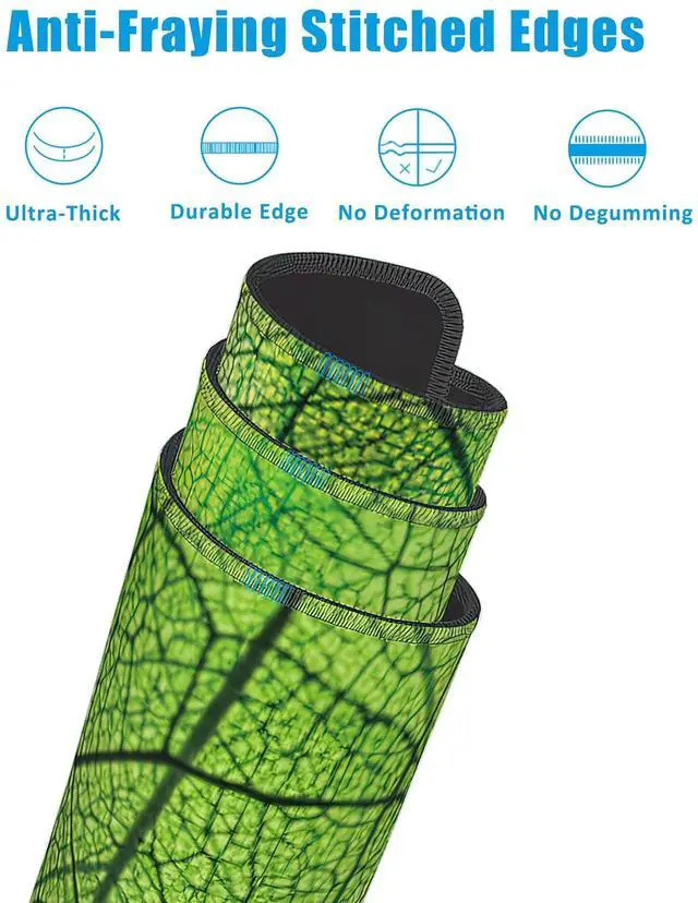 • Special DesignThis large mouse pad is crafted with a slip-resistant rubber base, which effectively prevents the mouse and keyboard from sliding and moving.Desk mat with durable stitched edges ensures the mouse pad will not degum or deform during use