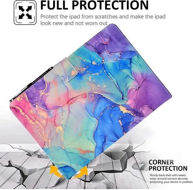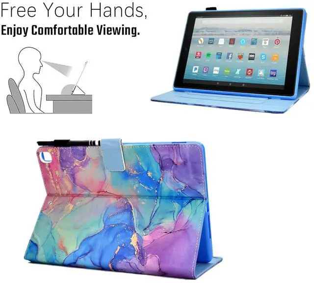 KEROM Case for Fire HD 10 Tablet (9th/7th/5th Generation, 2019/2017/2015 Release), PU Leather Folio Stand Protective Cover Case with Auto Wake/Sleep, Card Slot, Pen Holder - Colorful Marble