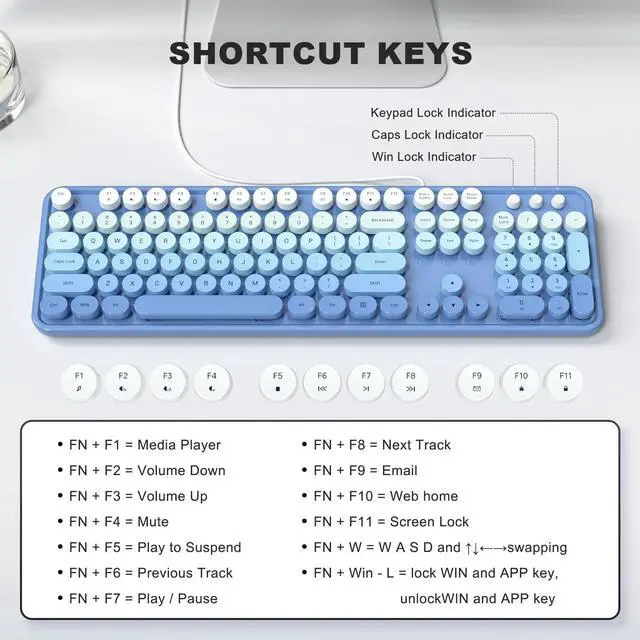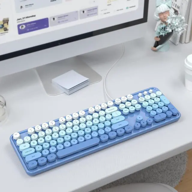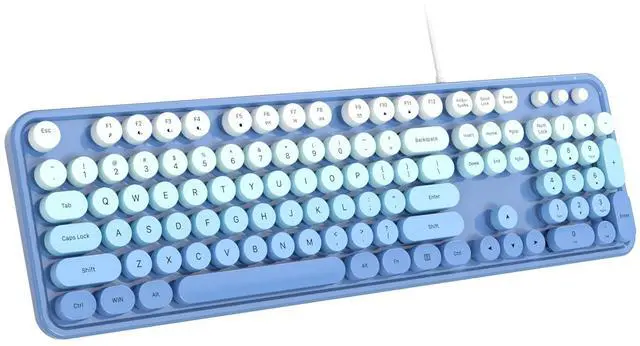 USB wired keyboard, cute appearance is specially designed for young people and ladies, it will become a good partner for office, school and family! Retro Typewriter KeyboardCute round keycaps, crisp and sweet sound, perfect knocking feel, let you find the feeling of a retro typewriter. And its detachable, make the keyboard easy to clean. Plug and PlaySimply connect your portable keyboard and computer with one USB cable, without any software. Plus it pairs almost instantly so you can get to using them in no time!