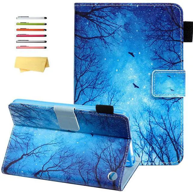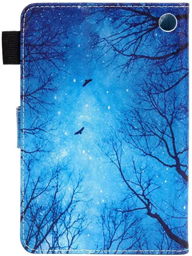 UUcovers Case for Kindle Fire 7 Tablet 2022 (Only Fits 12th Gen) with Pencil Card Holder [Auto Wake/Sleep] Folio Stand Smart Magnetic PU Leather Wallet Full Body Shockproof Cover, Night Blue Forest