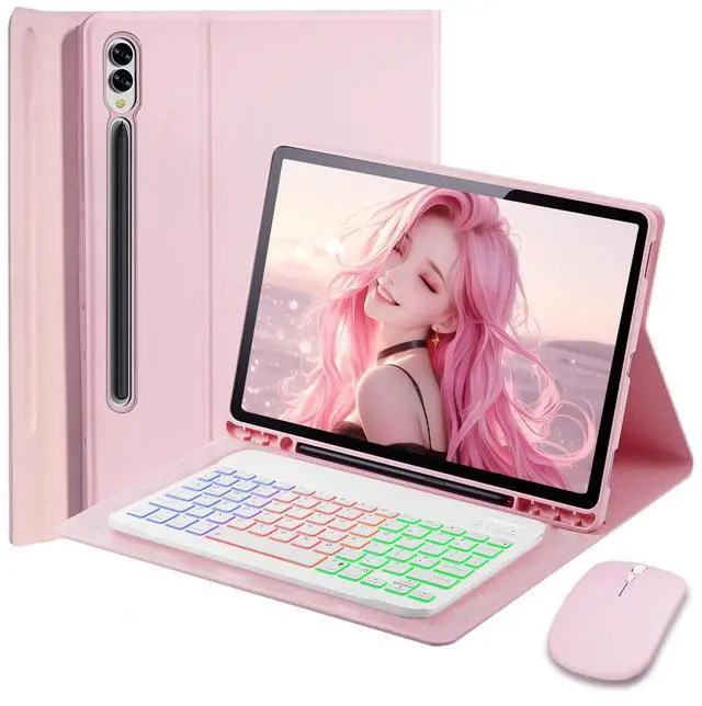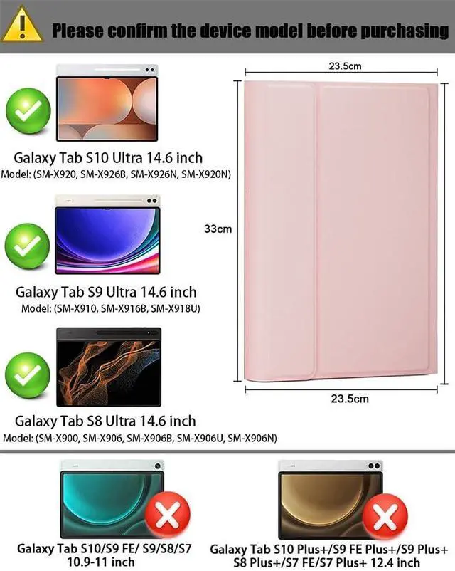 Models: SM-X900/SM-X906/SM-X906B/SM-X906U/SM-X906N. Not compatible with other 10.9 /11-inch and 12.14 -inch models. Please check the actual model and size of your tablet before purchasing. ^^ Magnetically Detachable Rainbow Backlit KeyboardCase for Samsung Galaxy Tab S10 Ultra / S9 Ultra / S8 Ultra 14.6 inch comes with a removable 7-color rainbow magnetic keyboard. The ultra-thin, lightweight magnetic keyboard attaches securely to the case, helping the tablet stand upright and turning it into a mini laptop in a second. Use the selectable backlight mode to choose your favorite color from 7 iridescent colors for smooth typing in the dark, even when working at night. ^^ Adjustable Viewing Angles and Support for Pencase supports 3 viewing angles and has anti-slip slots. Move the tablet forward or backward along the case to choose a suitable angle to use the tablet for writing, viewing, reading, drawing, etc. Built-in Pen holder makes it easy to carry the Pen with your device.