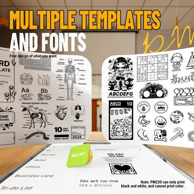 Powerful APP: The Nelko APP of this print pods mini printer has multiple template resources. The Nelko PM230 sticker printer can immediately print photos and text through AI Printing, OCR, Scan, Print Docs and other functions. The Nelko PM230 mini printer is interesting, but it is not a camera and can only print black and white. Use the scanning function to print research graphics clearly, and improves your learning efficiency ^^