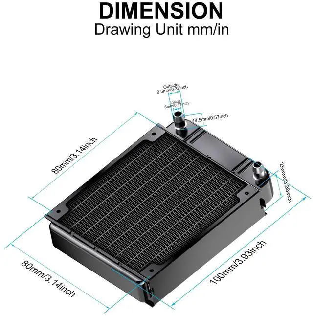 Package Included: 1 x Aluminum Heat Exchanger High speed fanNOTE: Screw holes below is channel pipe, so make sure not to use long screw, will top leaking.