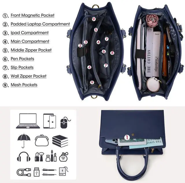 ^^ Versatile Tote Bag: Professional work bags for women comes with comfortable handle and detachable & adjustable shoulder strap, can be carried in different ways. Practical computer bag can be used as as a handbag, laptop bag, teacher tote bag, ladies briefcase, college school shoulder bag and business office work bag.