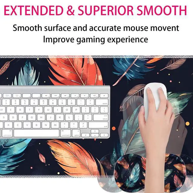 Large Gaming Mouse Pad + Mouse Wrist Rest Pad + Coaster Combination, 31.5 "x 11.8" Durable Non-Slip Extension Table Mat, Suitable for Office and Home, Feather